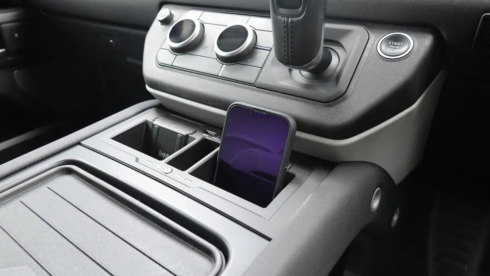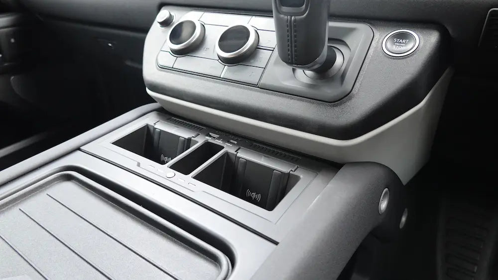 モバイルチャージャーはモバイル機器の中でも純正らしさがあるフィット感によりディフェンダー本来の車内雰囲気を崩しません。