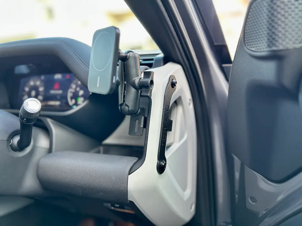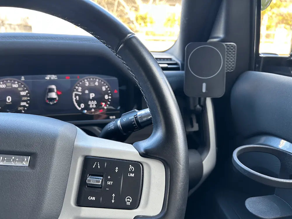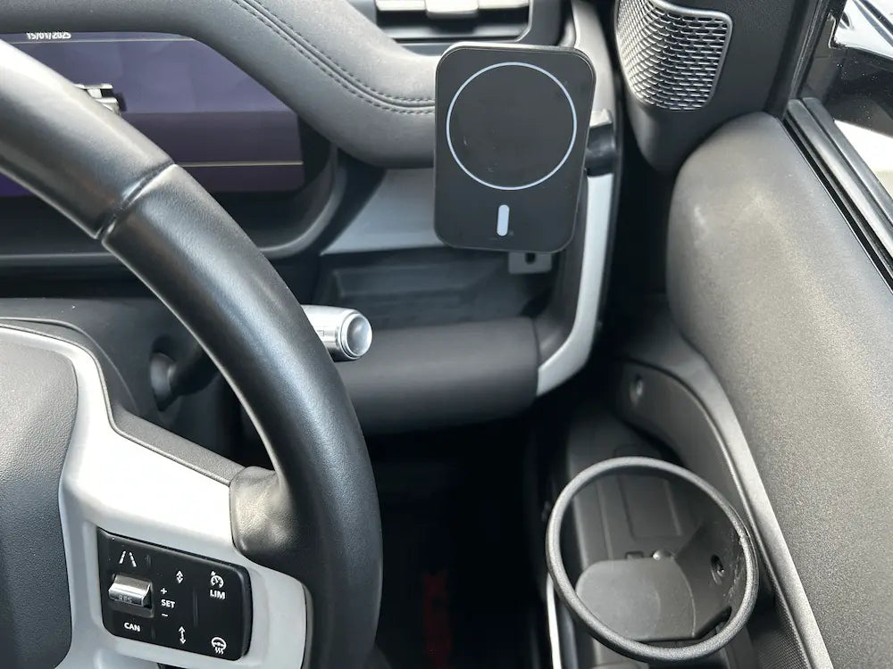 2025年モデルでは電源ポイントがセンターコンソール下になりますので付属のコードでは届きません。充電パッドを携帯ホルダーとしてご利用となります。コードをご自身でご用意いただけたら充電としても利用可能となります。