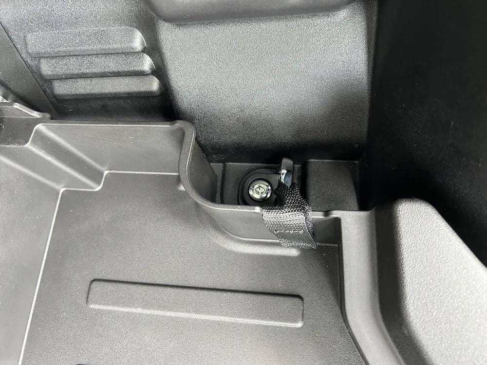 3.ストレージボックスをセットし左右のフックにベルトを固定する。