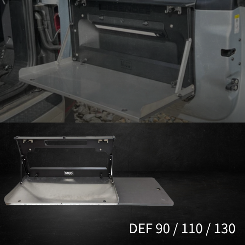 ・MUDディフェンダーリアドアテーブルを取り付けるために、リアドアトリムに穴あけや変更を加える必要はありませんので取外した後も見た目を損なわない取付け方法となります。